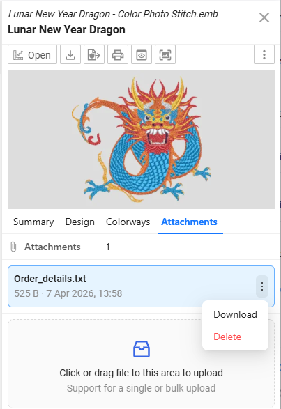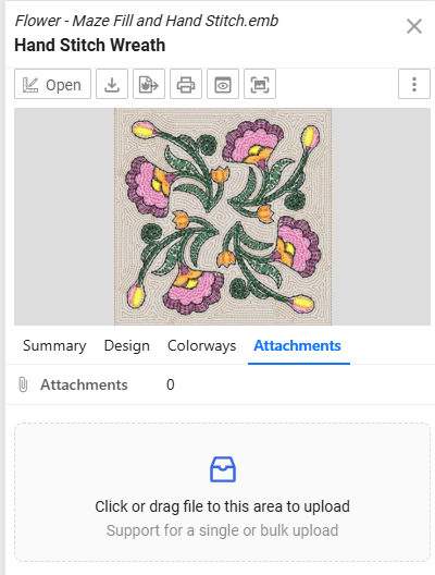 Attachments are stored with the design record but are not treated as embroidery design files.