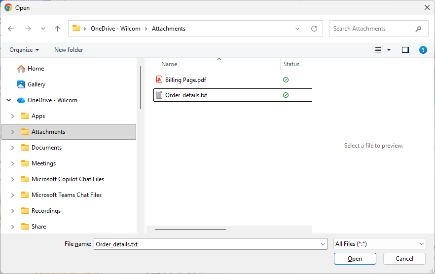 - Select a file and open the Attachments tab.