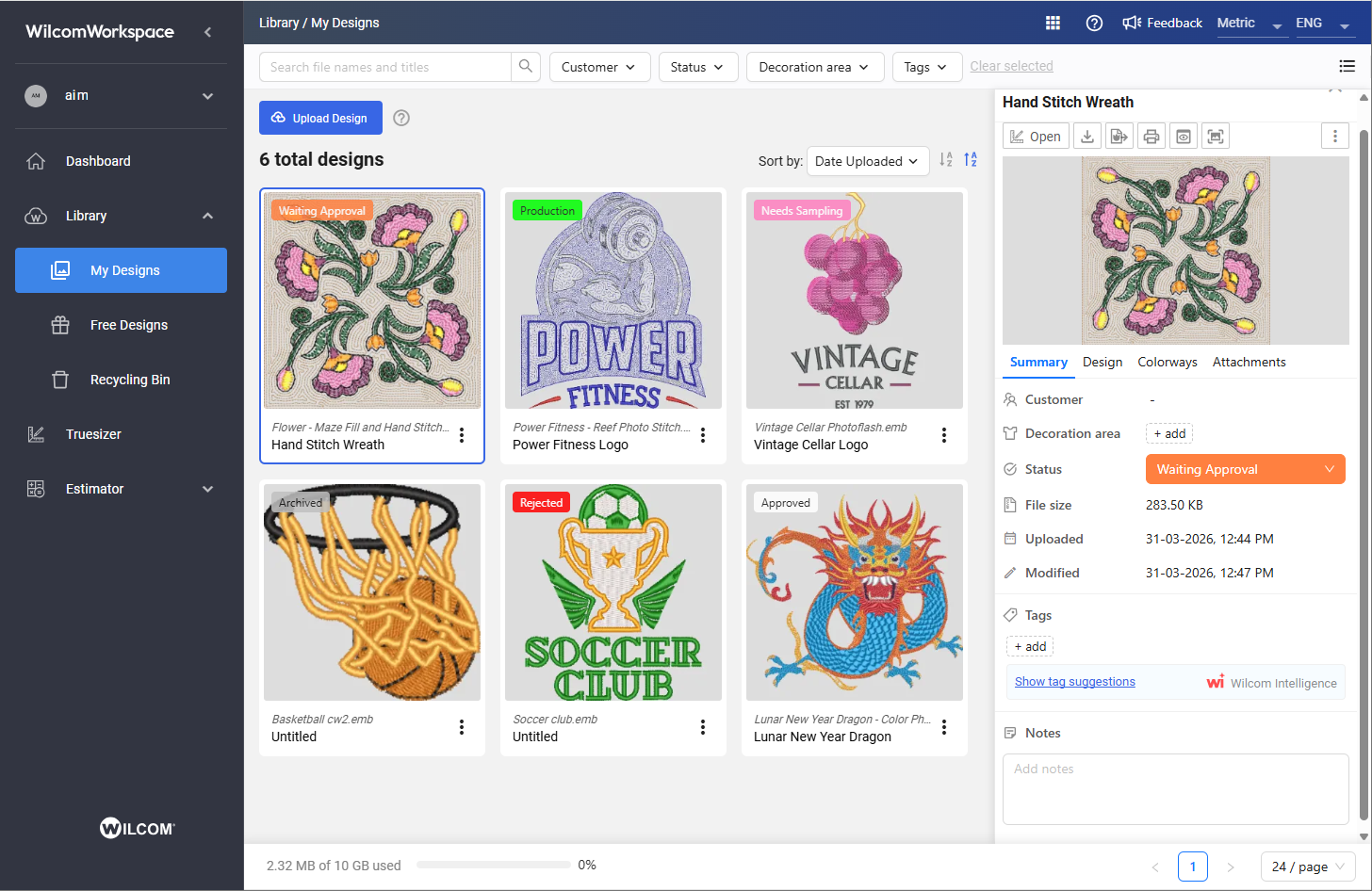 - Open designs from Library in Truesizer