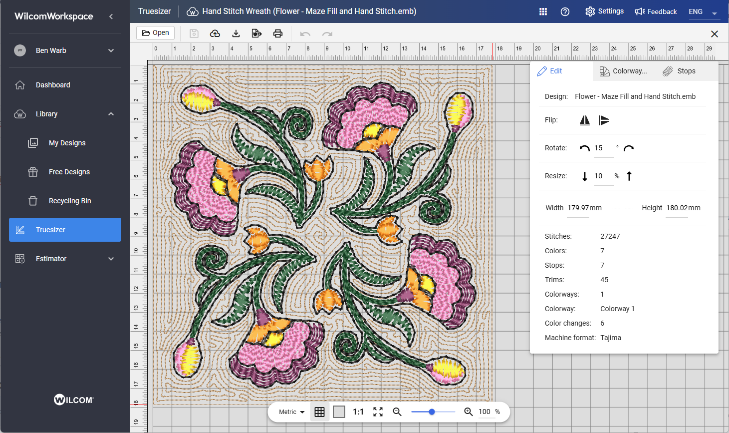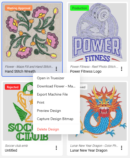 The Open in Truesizer command allows you to open a design from Wilcom Library directly in Truesizer for editing. This integration lets you modify designs using Truesizer tools and then save changes back to the Library so the updated design remains available to your team. While a design is open for editing, Library temporarily locks the design to prevent multiple users from editing it at the same time.